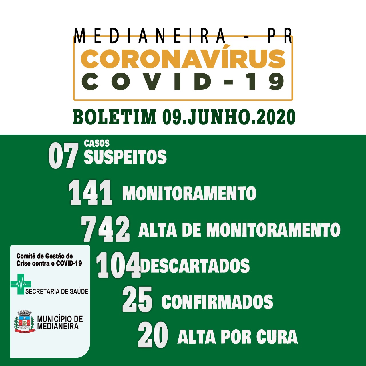 A Secretaria Municipal de Saúde de Medianeira informa sobre a situação do Covid-19 (Coronavírus) no município