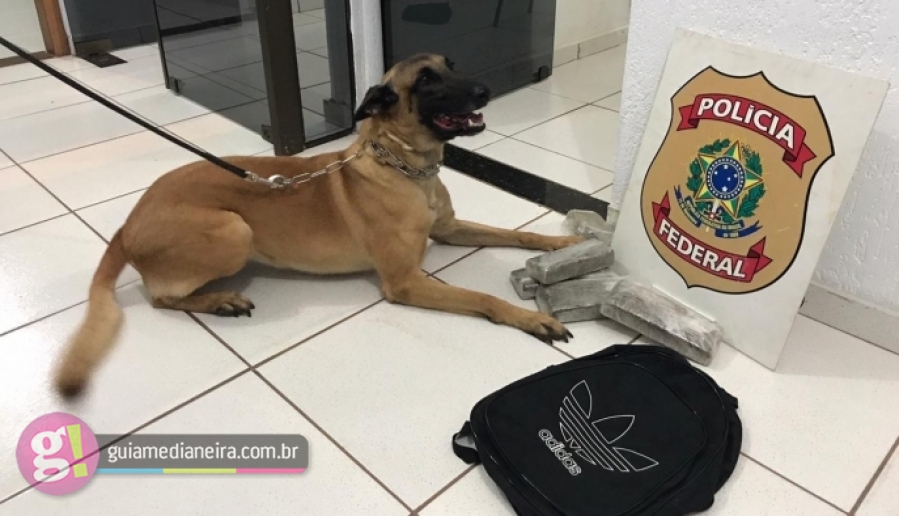 Ele portava uma pequena mochila que estava vazia. Ao ser submetida a inspeção, o cão deu indicação positiva para a presença de odor de entorpecente na bolsa.