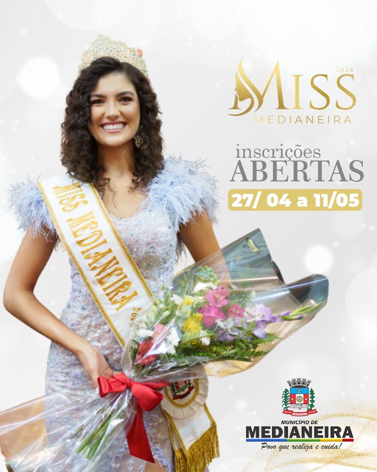 ESTÃO ABERTAS AS INSCRIÇÕES PARA O MISS MEDIANEIRA 2026