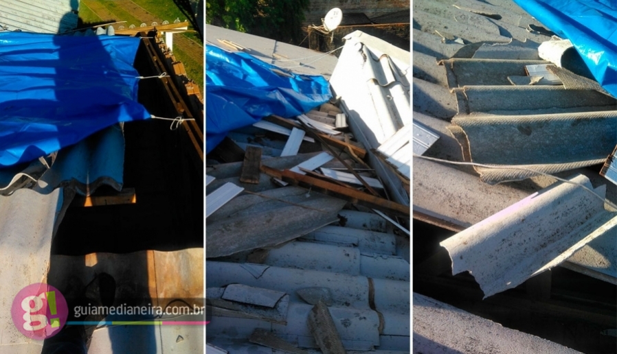 Em algumas das casas, grande parte do telhado foi arrancado com a força dos ventos.