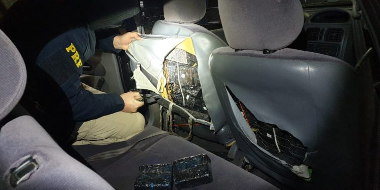 Durante fiscalização minuciosa no veículo, a equipe PRF encontrou, oculto nos estofados dos bancos traseiros e dianteiros, 2,3 mil cartelas, totalizando 45 mil comprimidos de medicamentos importados de forma ilegal do Paraguai.