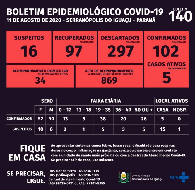 A Secretaria Municipal de Saúde informa sobre a situação da Covid-19 em Serranópolis do Iguaçu.