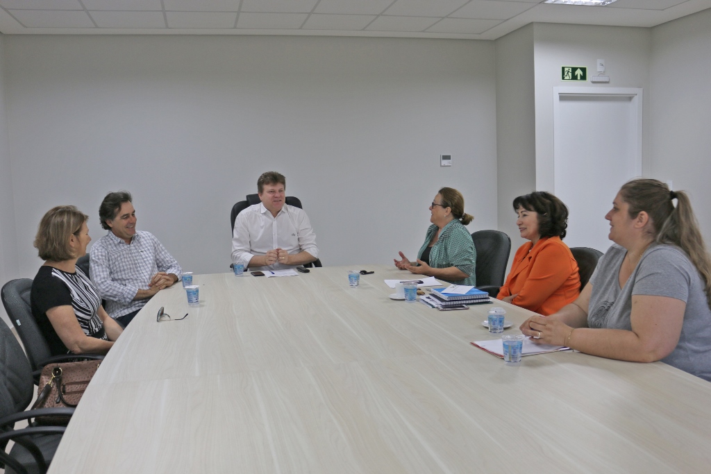 O prefeito Ricardo Endrigo e o Vice Neguinho ase reuniram nesta terça-feira (11) com a presidente da Associação Empresarial de Medianeira – Acime, Rita Maria Schierholt, a diretora de Comércio, Theresinha Ghidolin Rupp, diretora Acime Mulher, Roberta Nascimento, e a representante técnico da Secretaria de Educação e Cultura, Shayana Grassi de Almeida, para discutir o projeto de ornamentação natalina da Avenida Brasília e da Praça Ângelo Darolt.