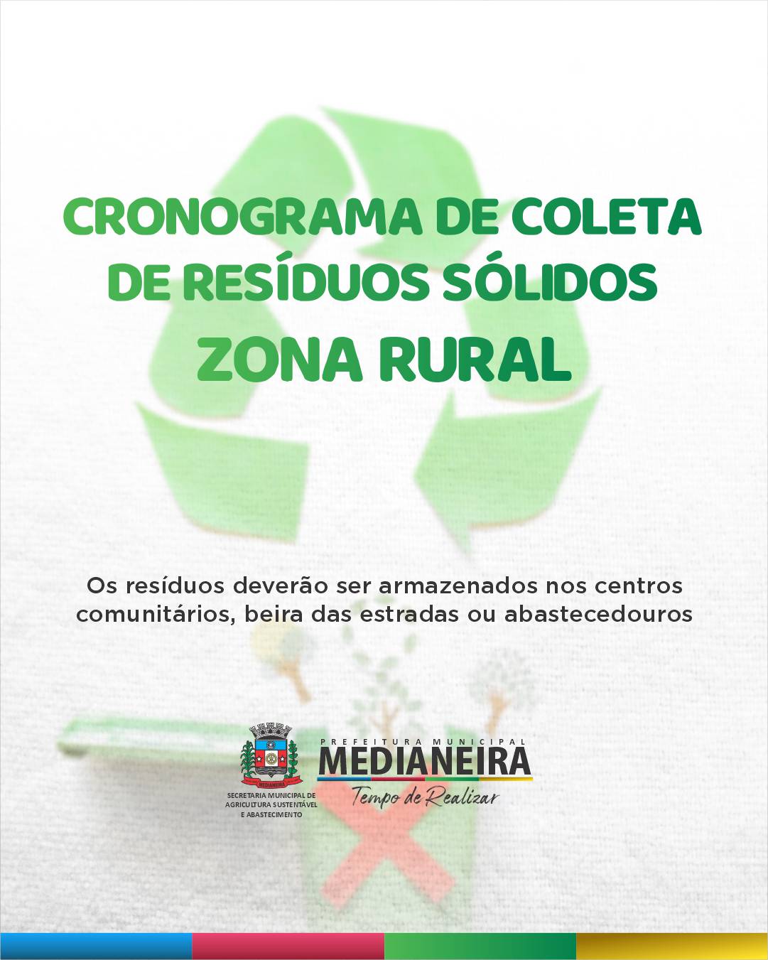 É importante ressaltar que os resíduos deverão ser armazenados nas comunidades (centro comunitário), abastecedouros de água e beira de estradas, pois não será feita a recolha dentro das propriedades.