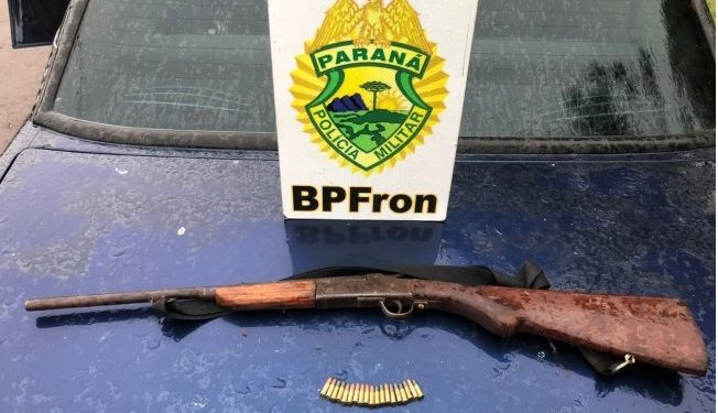 No veículo foram encontradas uma espingarda calibre .22 além de 19 munições do mesmo calibre da arma.