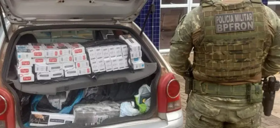 Em mais uma ação para combater o contrabando na região de fronteira, policiais militares do Batalhão de Polícia de Fronteira (BPFRON) apreenderam um veículo carregado com diversos produtos de origem estrangeira nesta quinta-feira (12).