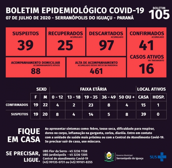 A Secretaria Municipal de Saúde informa sobre a situação da Covid-19 em Serranópolis do Iguaçu.