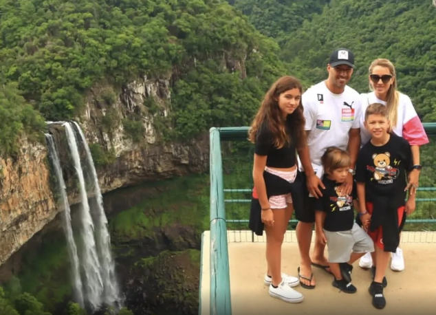 Suárez esteve na Cascata do Caracol, conhecido ponto turístico em Canela, cidade a poucos quilômetros de Gramado. A fotografia da família foi postada pelo perfil oficial do local no mirante com imagem para a queda d’água de 131 metros.