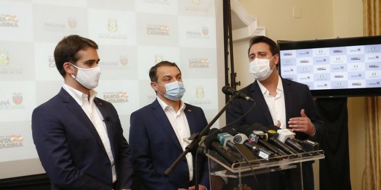 O anúncio foi feito pelos governadores Carlos Massa Ratinho Junior (Paraná), Carlos Moisés (Santa Catarina) e Eduardo Leite (Rio Grande do Sul), além dos respectivos secretários de Saúde de cada estado. O novo ministro da Saúde, Marcelo Queiroga, e o antigo, Eduardo Pazuello, em processo de transição no comando da pasta, participaram do início da reunião.