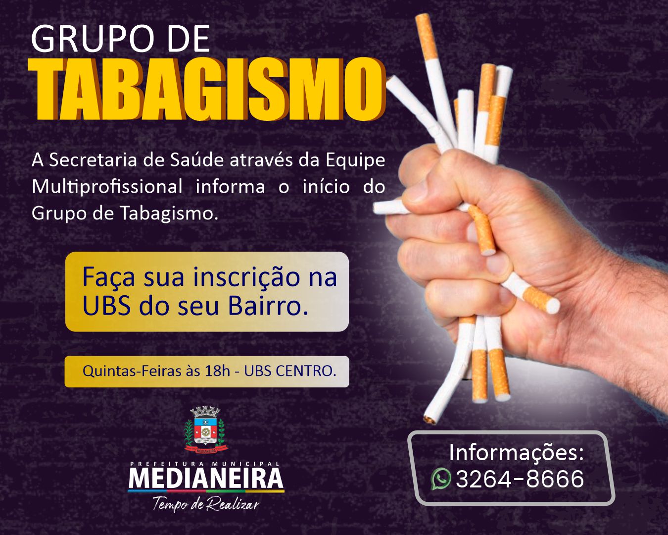 A Secretaria de Saúde, através da Equipe Multiprofissional, informa que nesta quinta-feira (15) inicia os encontros do Grupo de Tabagismo.
