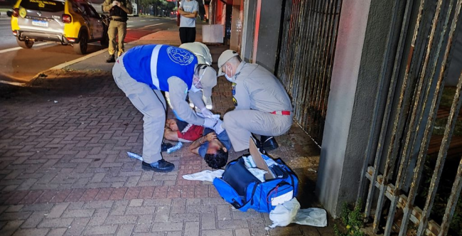 Ao chegarem ao local, os policiais encontraram o homem caído em frente à residência, bastante ferido. Diante da situação, o serviço de resgate do Corpo de Bombeiros foi imediatamente mobilizado.