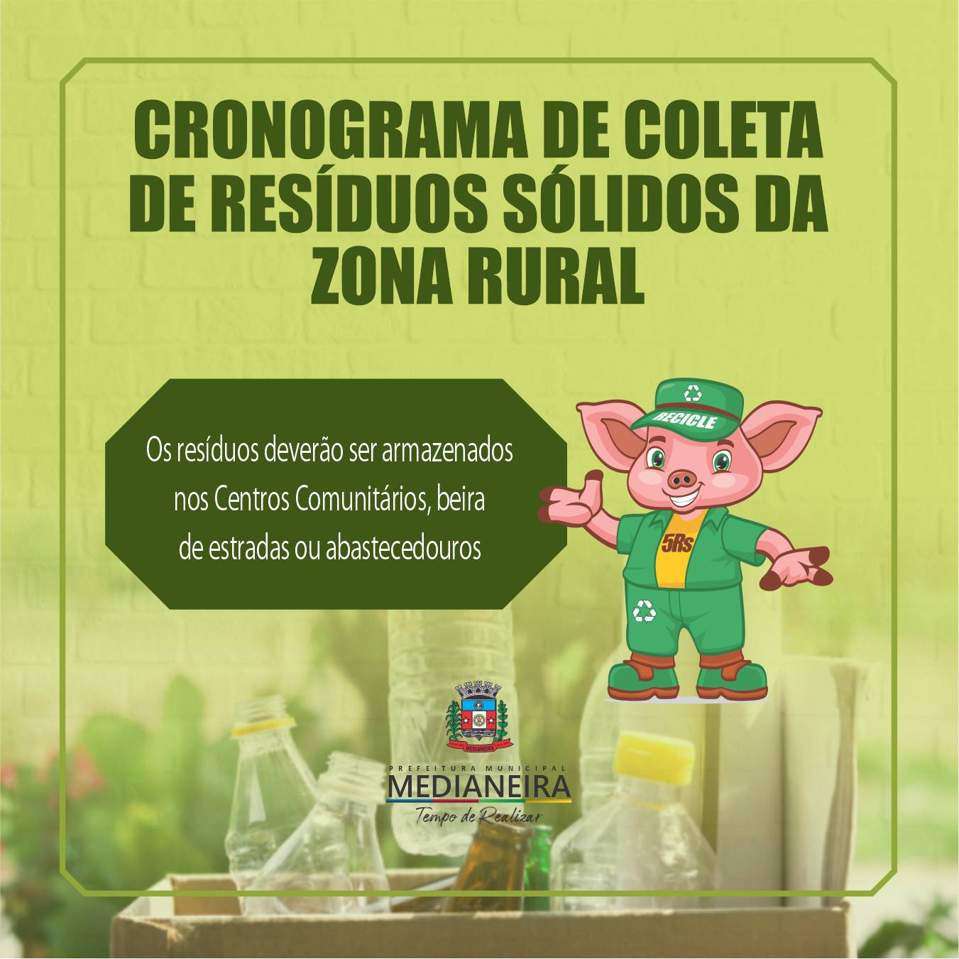 É importante ressaltar que os resíduos deverão ser armazenados nas comunidades (centro comunitário), abastecedouros de água e beira de estradas, pois não será feita a recolha dentro das propriedades.