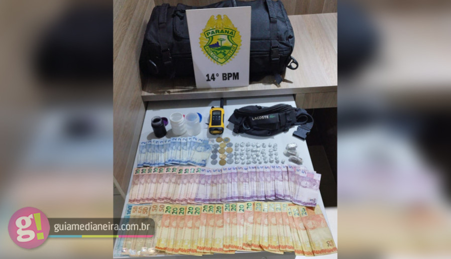 Com o abordado a equipe localizou 41 pedras de substância análoga ao crack, 3 porções de substância análoga a maconha, além de um rádio comunicador e certa quantia em dinheiro.