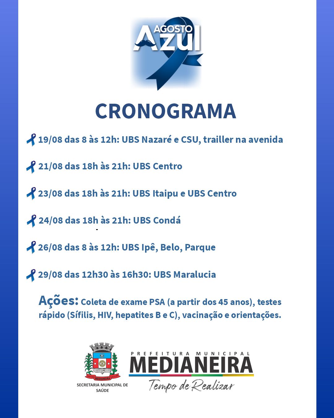 A Secretaria de Saúde de Medianeira inicia neste sábado (19) as ações de prevenção e saúde do homem da campanha Agosto Azul.