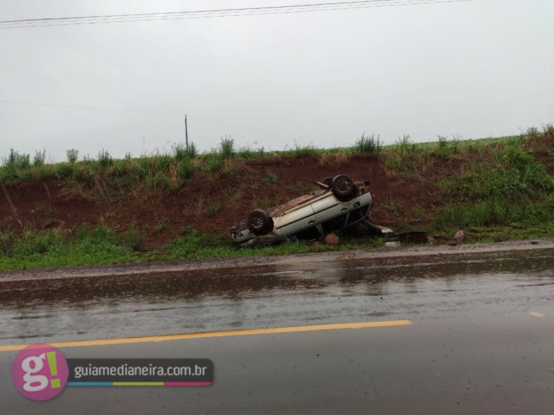Medianeira: Veículo capota na PR 495; mulher e criança foram socorridas