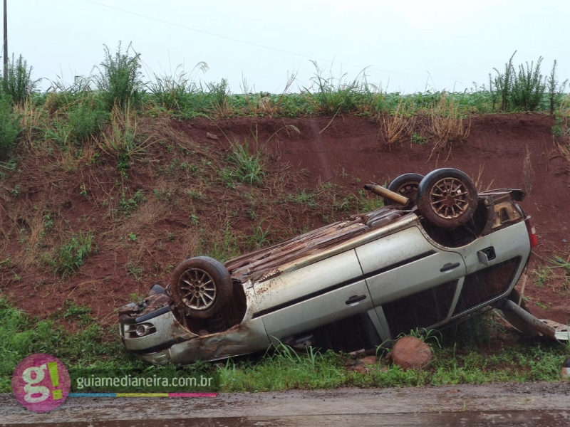 Medianeira: Veículo capota na PR 495; mulher e criança foram socorridas