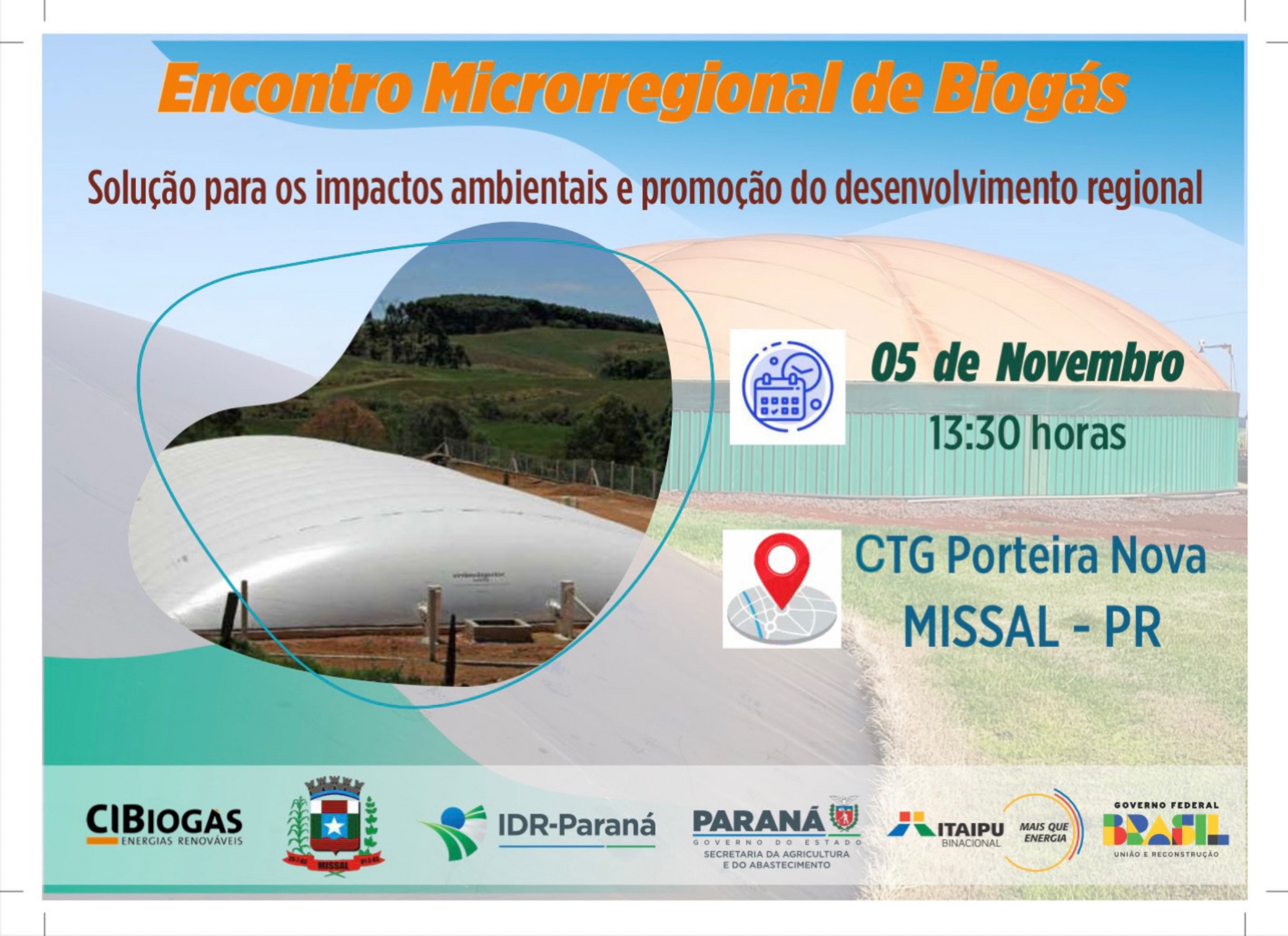 O município de Missal irá sediar, no próximo dia 05 de novembro, terça-feira, um importante evento para a discussão sobre o Biogás. Trata-se de um Encontro Microrregional a partir das 13h30 na sede do CTG Porteira Nova.
