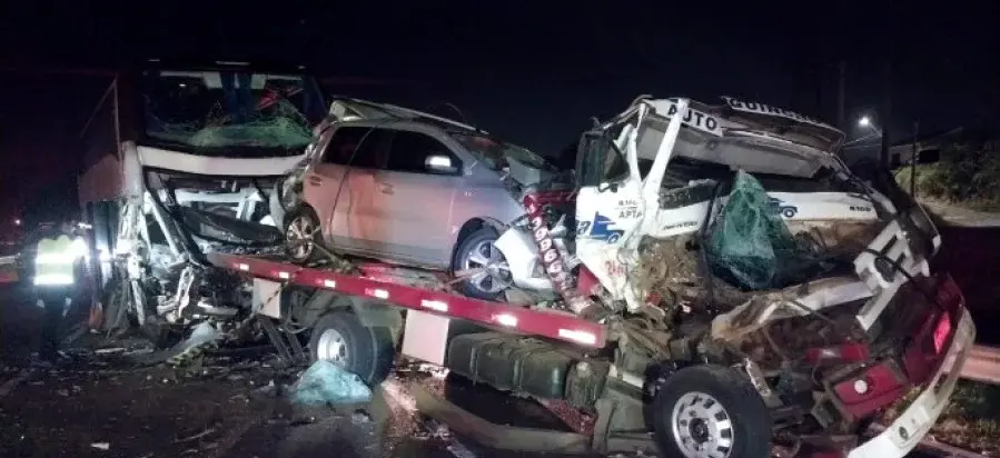 As primeiras informações dão conta que o motorista do ônibus acabou colidindo violentamente no guincho que foi empurrado contra um caminhão baú que estava na frente, provocando um engavetamento.