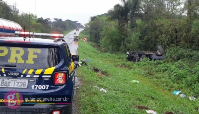 O veículo seguia sentido Palmeira – Guarapuava quando em trecho em reta e final de faixa adicional (3ª faixa) veio a descontrolar-se, derrapando sobre a faixa de circulação e saindo de pista pelo seu lado direito, adentrando a área verde e capotando por diversas vezes até repousar sobre seu teto.