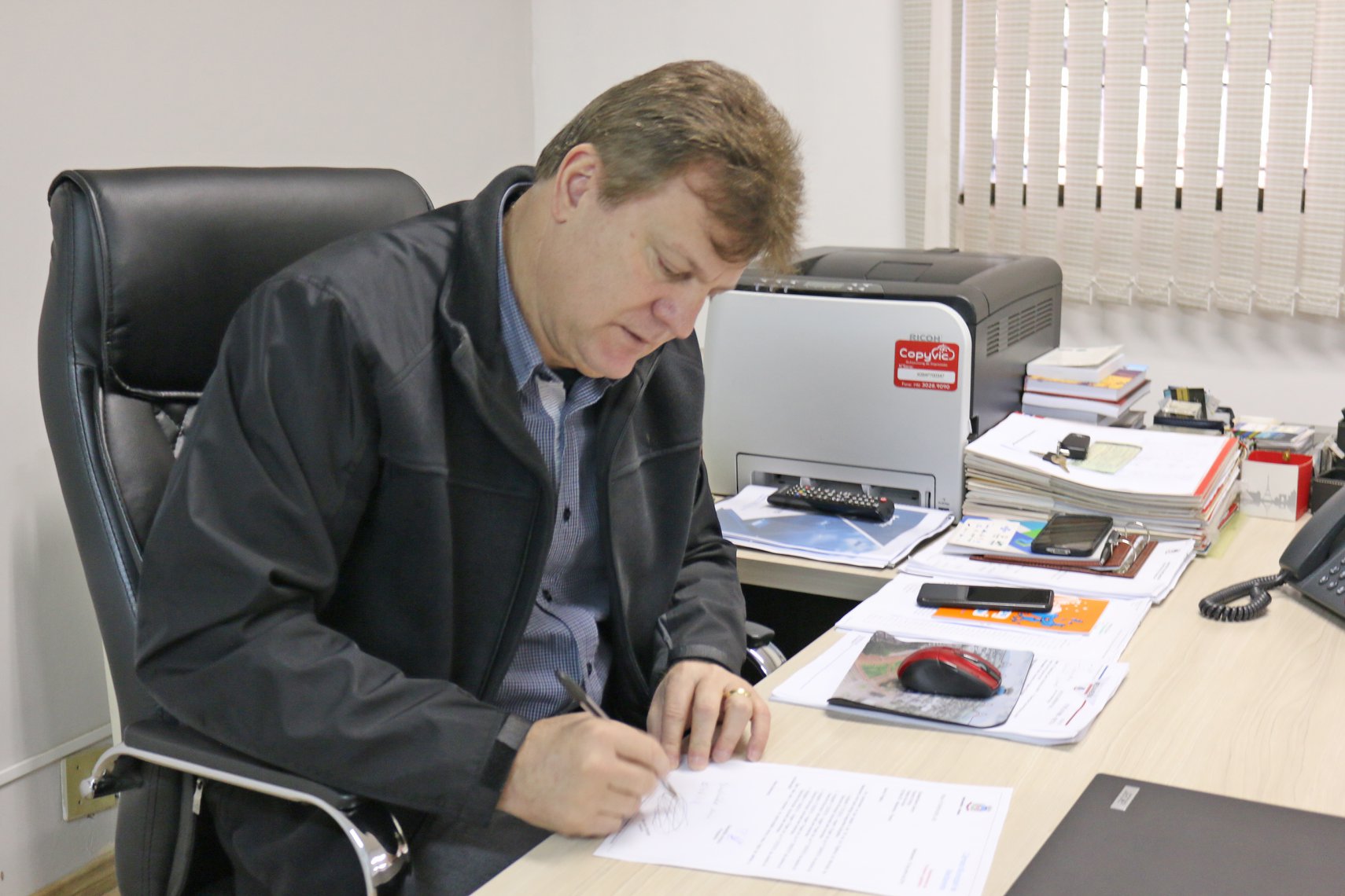 Ricardo Endrigo recebe do vereador Sidney os projetos aprovados pela Câmara
