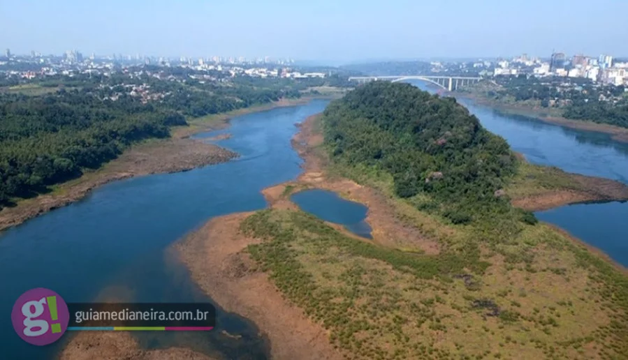O Rio Paraná está com nível de 5 a 8 metros abaixo no normal deixando à mostra parte das margens e pedras, no trecho próximo a Ponte Internacional da Amizade, entre Foz do Iguaçu, no oeste do estado, e Cidade do Leste, no Paraguai, segundo Itaipu Binacional.
