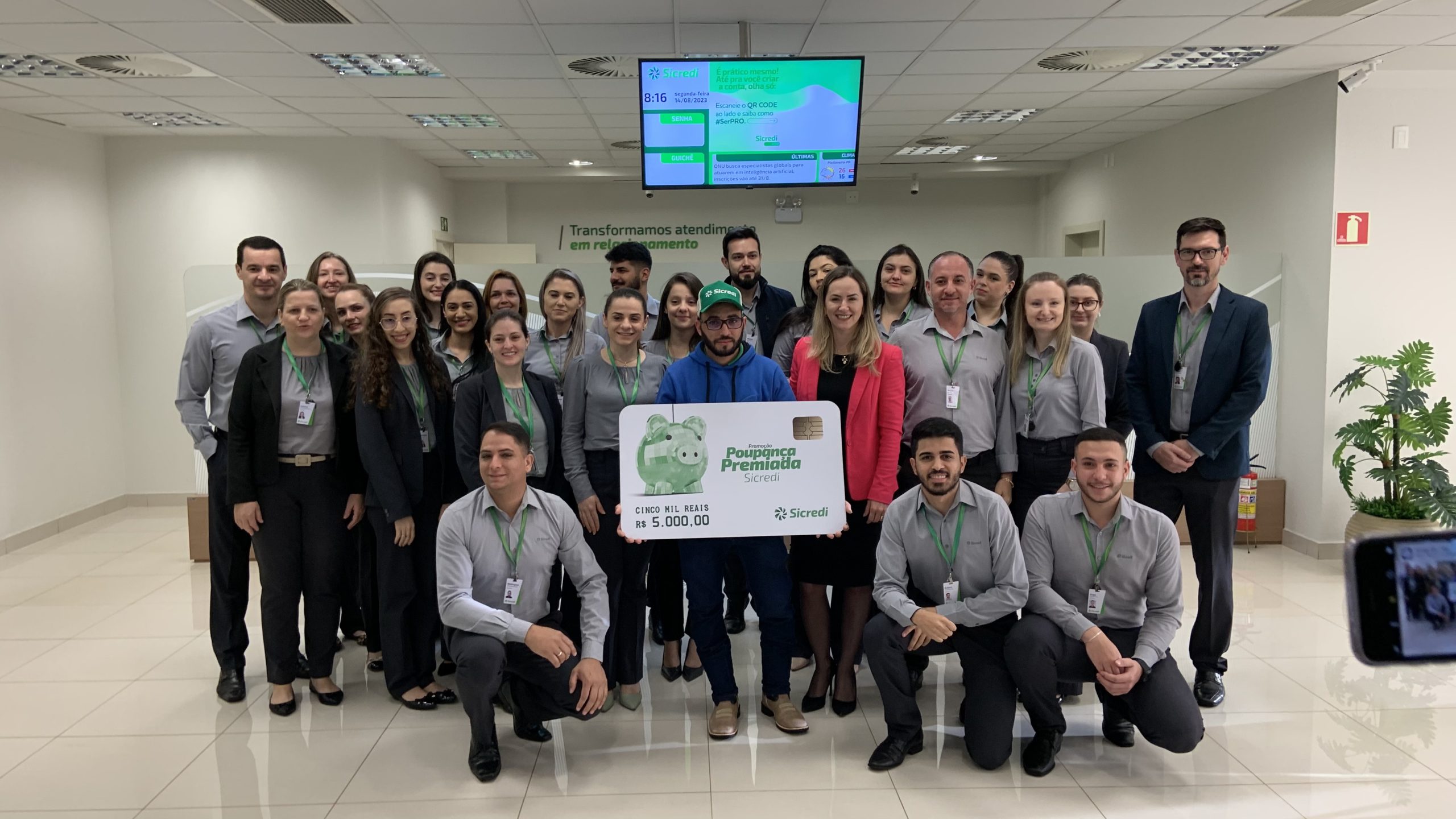 A agencia Sicredi Vanguarda da avenida Pedro Soccol teve um poupador sortudo que foi sorteado na poupança premiada Sicredi.