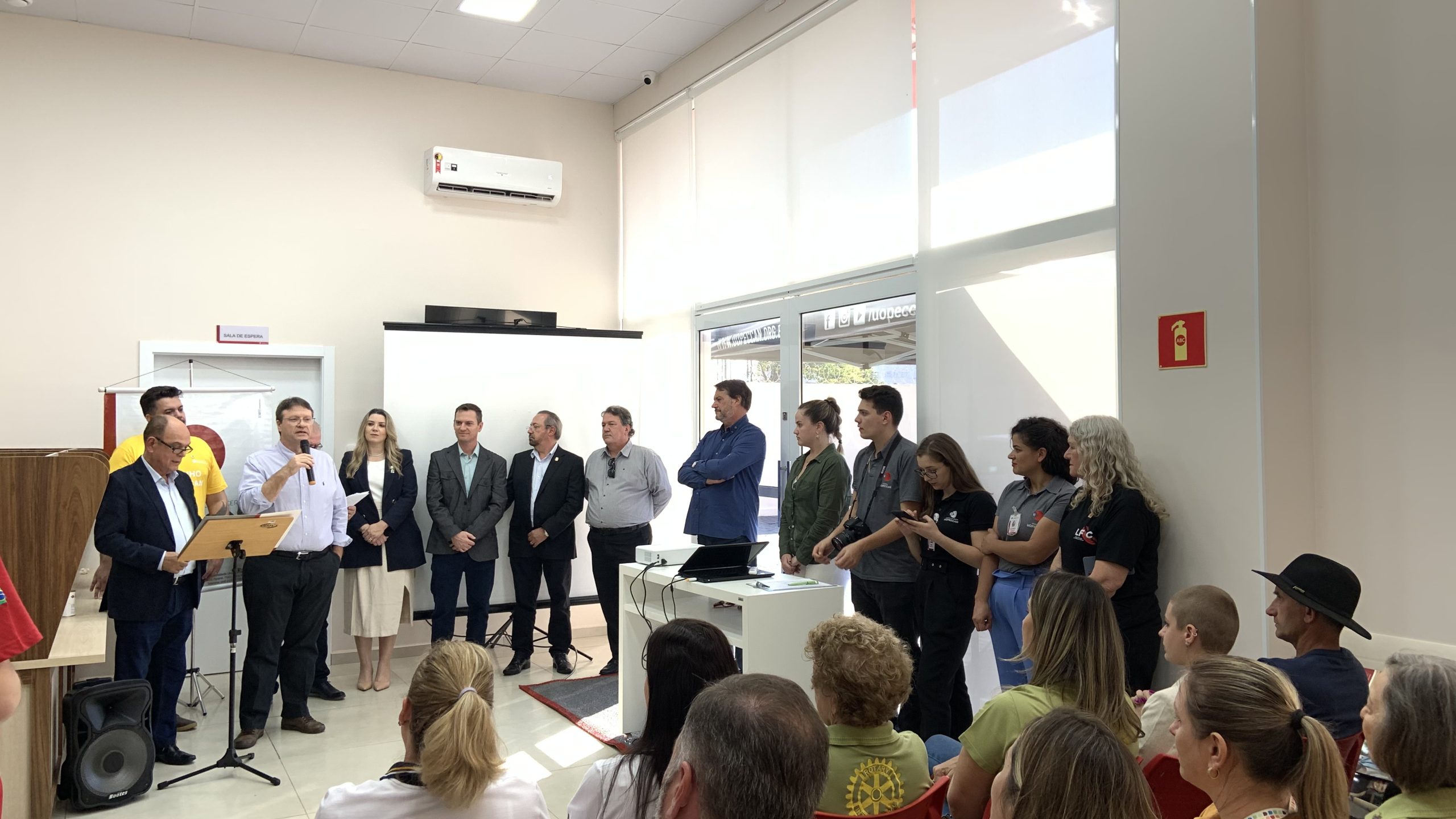 Na oportunidade estiveram presentes autoridades do municipio de medianeira, representantes dos Lions e Rotarys, o vigário da paroquia Nossa Senhora Medianeira de Todas as Graças Padre Edivaldo Donato e a diretoria do Uopeccan.