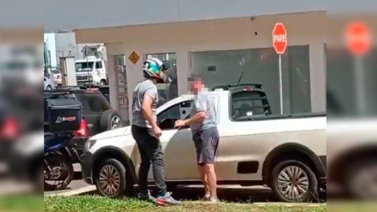 O vídeo original, que tem 1 minuto e 42 segundos, mostra o desfecho da briga, que termina com o motorista do carro e o motociclista deixando o local após o desentendimento.